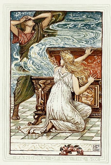 From Roberto Nickel’s Pressbook, Myths of the Greek and Roman Gods: “Hesiod recounts the myth of the creation of the first woman, Pandora, twice: first in the Theogony and then again in the Works and Days. The two versions each contain unique information and have different emphases. It is important to read each version carefully to compare them and to build a fuller version of the myth by taking both accounts into consideration.”